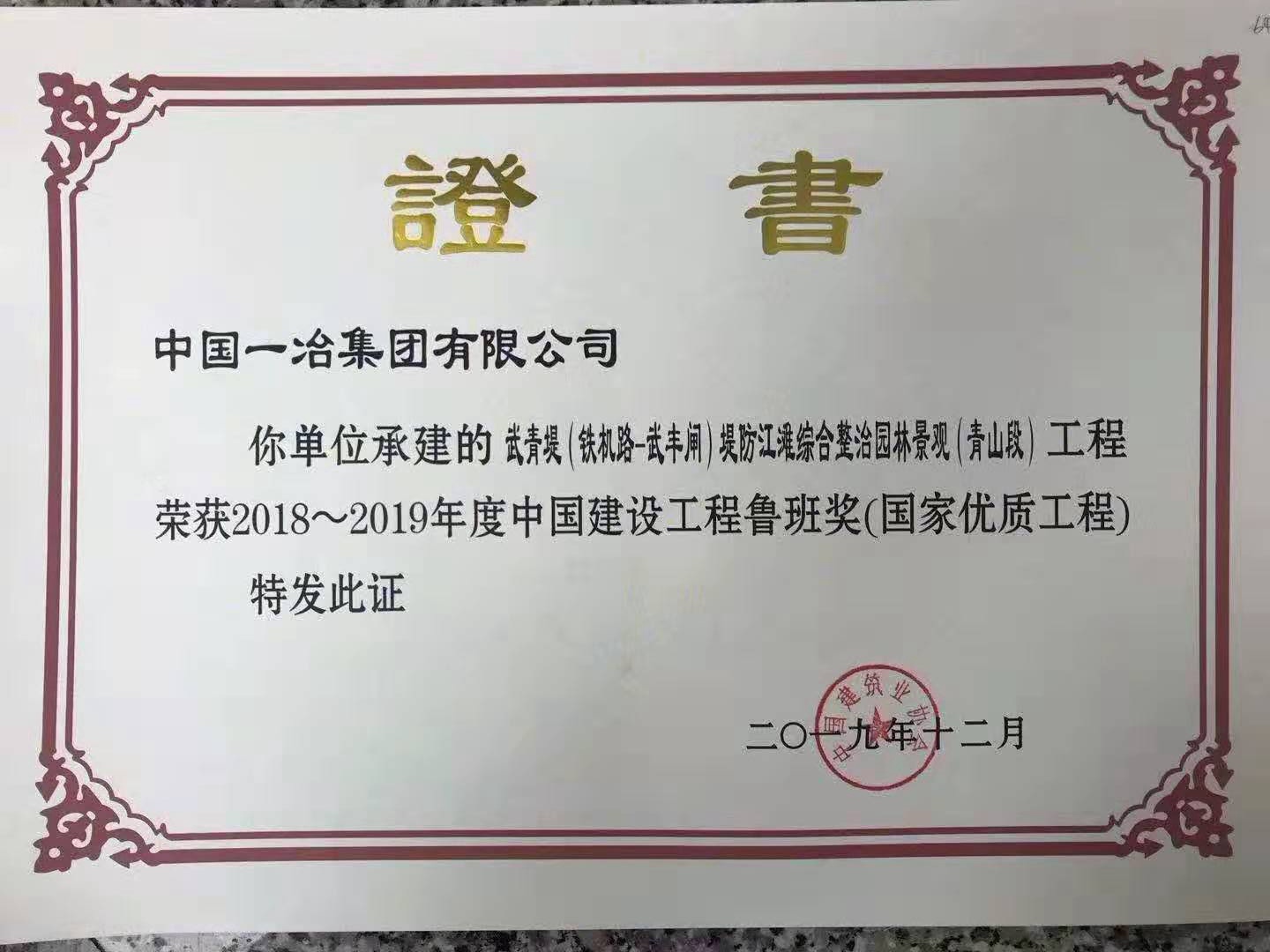 武青堤(青山段)工程獲魯班獎(國家優(yōu)質(zhì)工程)