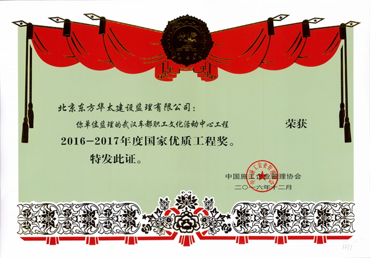 武漢車都文化活動中心國家優(yōu)質(zhì)工程獎