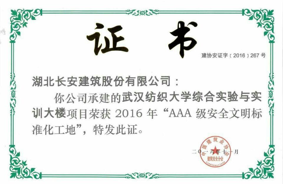 武漢紡織大學(xué)綜合實驗與實訓(xùn)大樓AAA級安全文明標(biāo)準(zhǔn)化工地