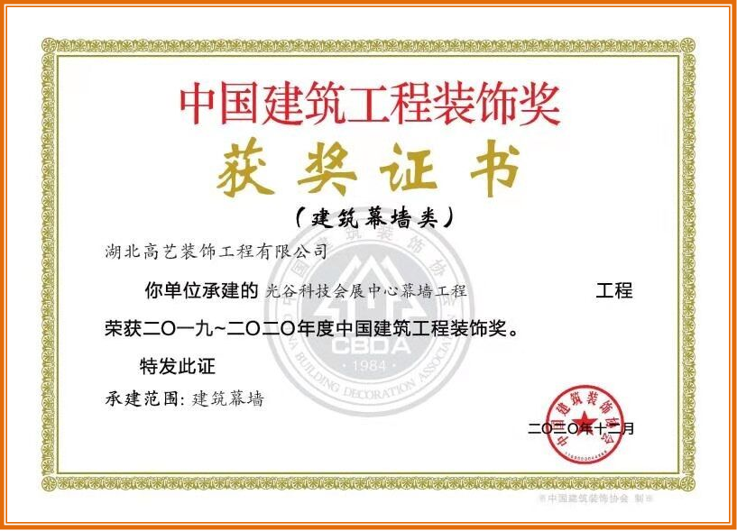 光谷科技會展中心項目榮獲2019-2020年中國建筑工程裝飾獎